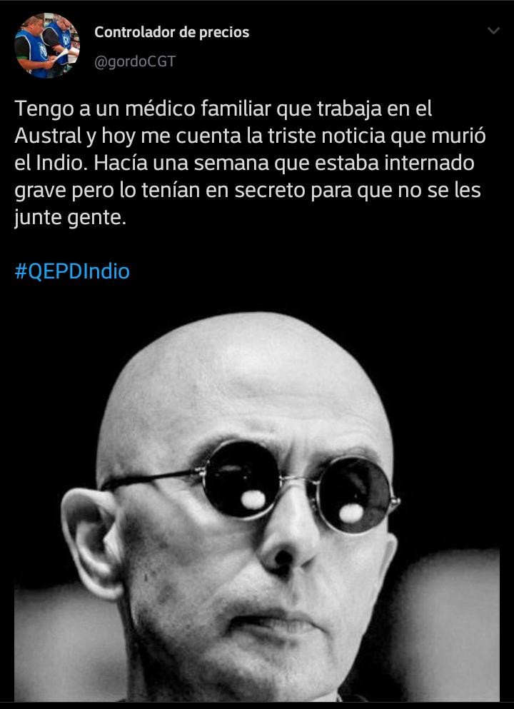 Frases, temas y su salud tras 5 años de parkinson el líder de la ex banda patricio rey y sus redonditos de ricota y actual de los fundamentalistas del aire acondicionado nació en 1949 en paraná, entre ríos. Indio solari compartió una foto que preocupó a sus fanáticos el músico publicó en instagram una foto vinculada a su estado de salud que preocupó a sus seguidores. En marzo del 2016 el indio realizaba su penúltimo recital en vivo en la ciudad de tandil, allí ante casi 200 mil personas anunciaba, minutos antes de empezar el show, su delicado estado de salud. Indio solari, el famoso rockero argentino, le envió un sentido mensaje a un futbolista uruguayo. El reconocido cantante se volcó a las redes ante una falsa noticia que empezó a correr en las últimas horas.