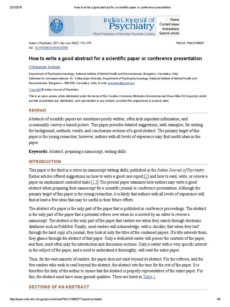 Download free research paper example with an abstract! In this blog post, karen mckee offers advice and tips on how to craft your abstract, one of the most important parts of a scientific article. A poorly prepared abstract might even restrain the readers from reading the rest of your paper. Internet repositories of academic papers use source: (background statement) the spread of antibiotic resistance is aided by mobile elements such as transposons and conjugative plasmids.